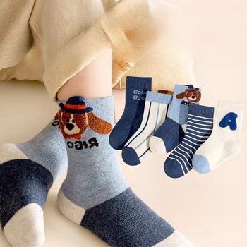 Venta al por mayor de suministros para niños, calcetines de algodón de felpa, calcetines altos de equipo, calcetines de punto con patrón de animales para niños